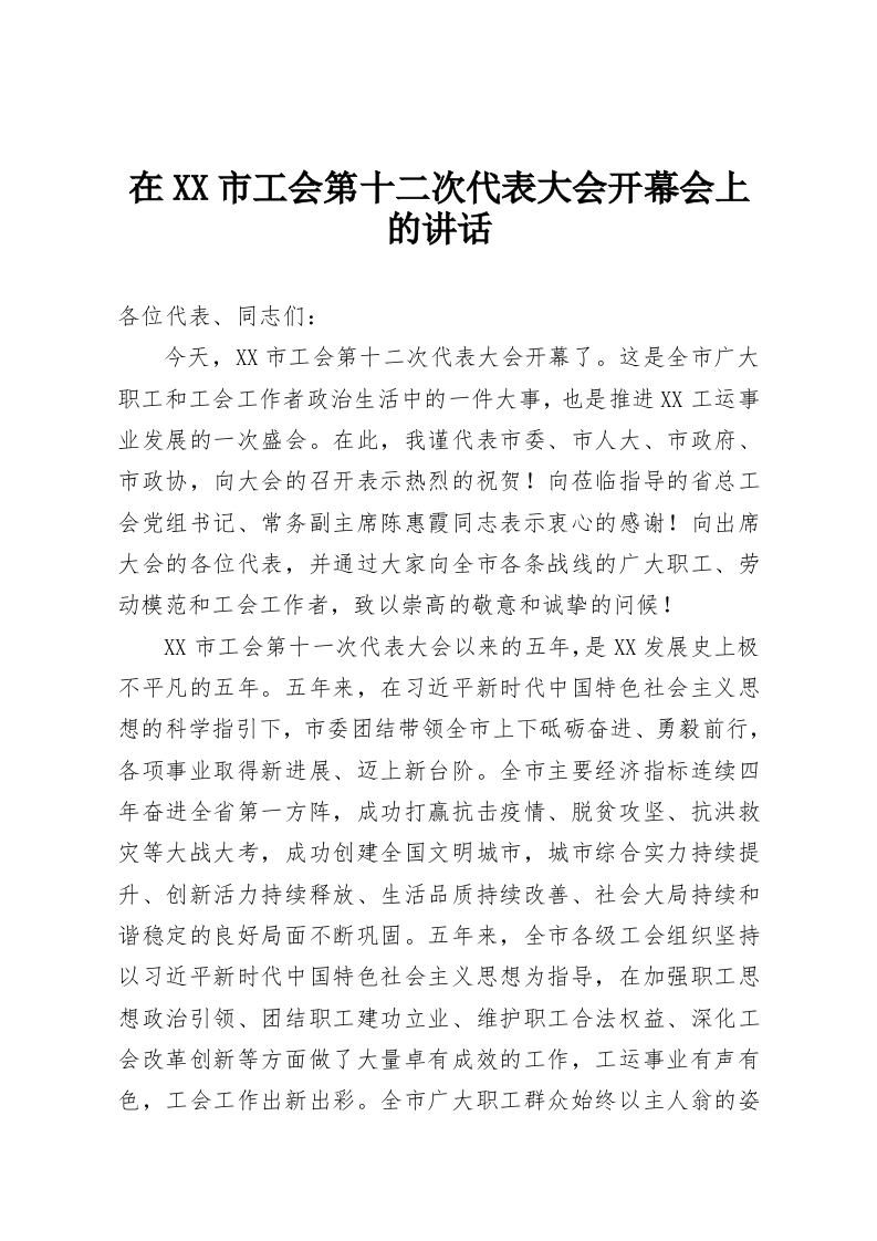 首页公文大全讲话发言在XX市工会第十二次代表大会开幕会上的讲话