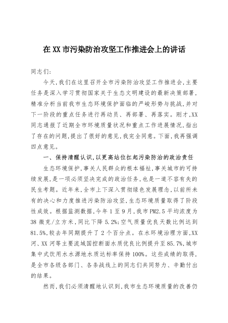 首页公文大全讲话发言在XX市污染防治攻坚工作推进会上的讲话