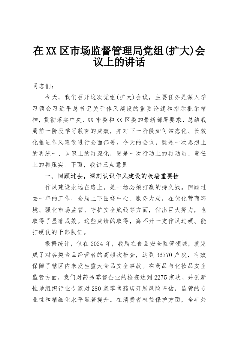 在XX区市场监督管理局党组(扩大)会议上的讲话