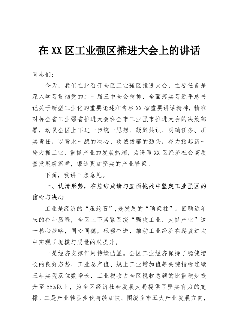 首页公文大全讲话发言在XX区工业强区推进大会上的讲话
