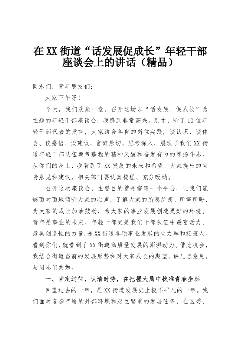 在XX街道“话发展促成长”年轻干部座谈会上的讲话(精品)