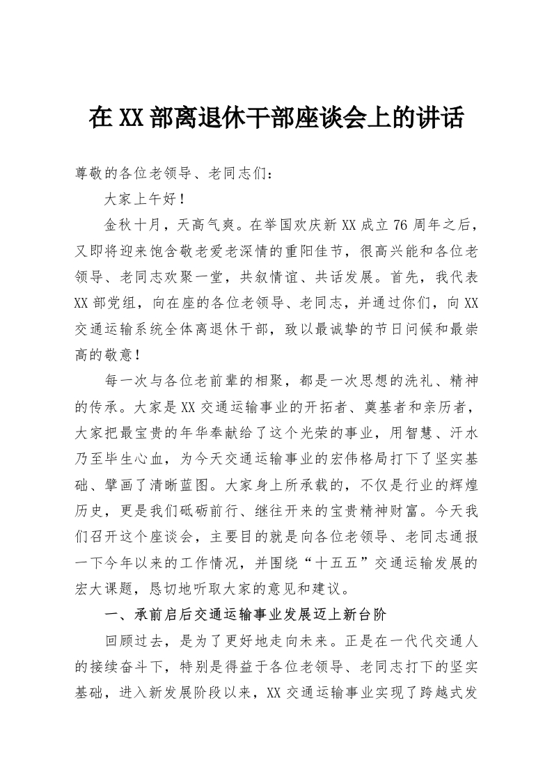 首页公文大全讲话发言在XX部离退休干部座谈会上的讲话