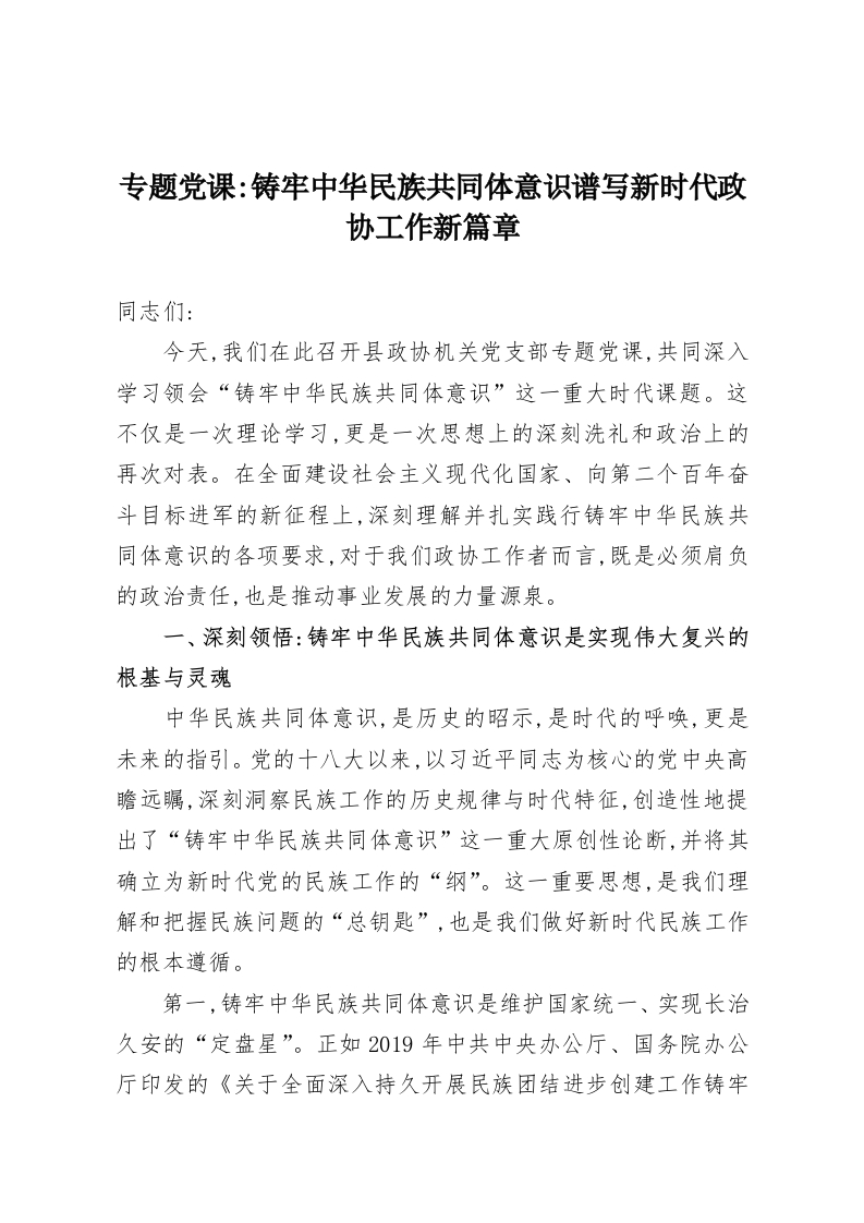 专题党课:铸牢中华民族共同体意识谱写新时代政协工作新篇章