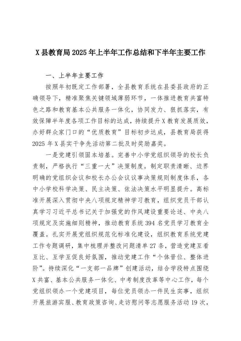 首页公文大全总结报告X县教育局2025年上半年工作总结和下半年主要工作