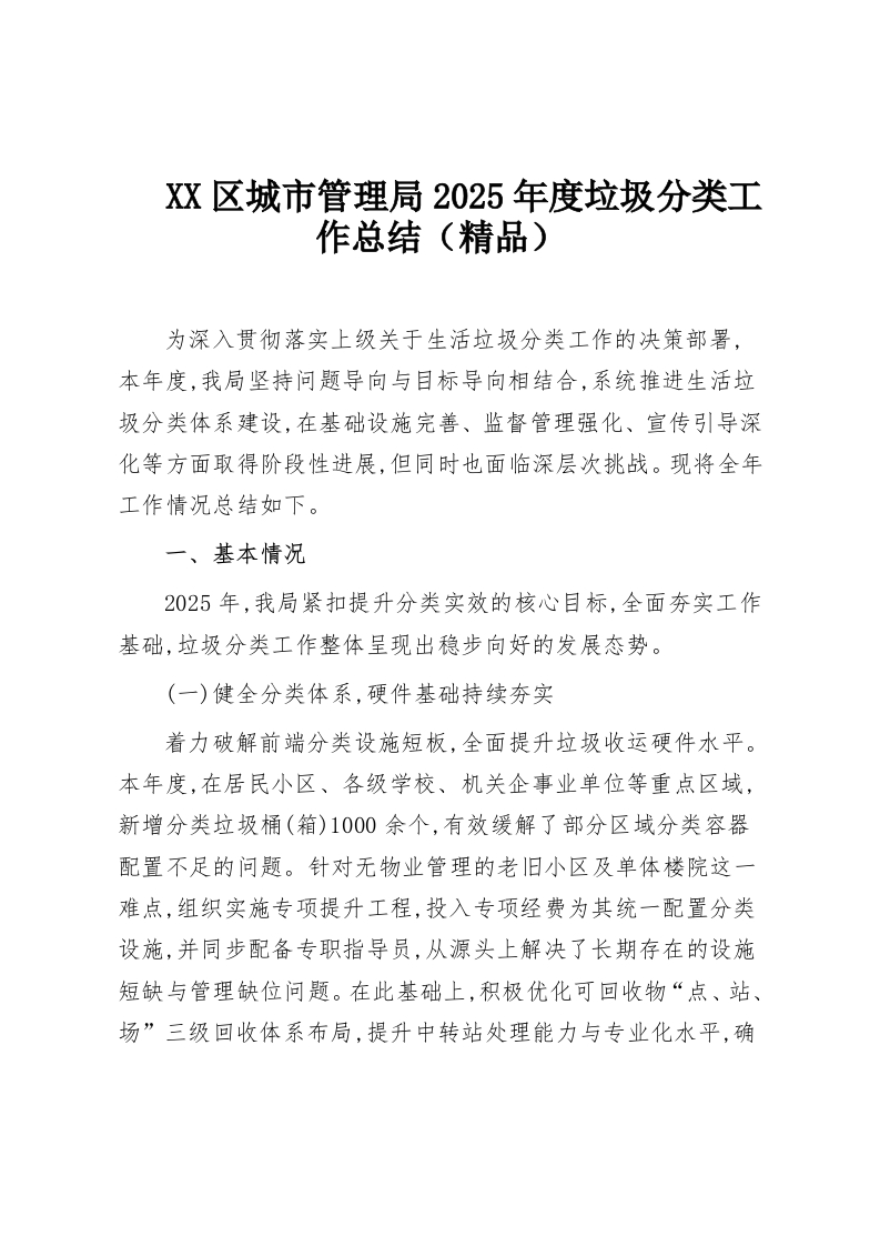 XX区城市管理局2025年度垃圾分类工作总结(精品)