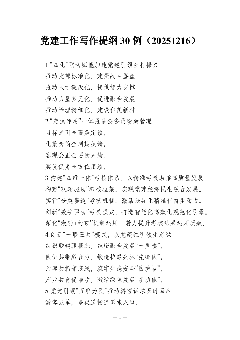 首页写作提升写作提纲党建工作写作提纲30例(20251216)