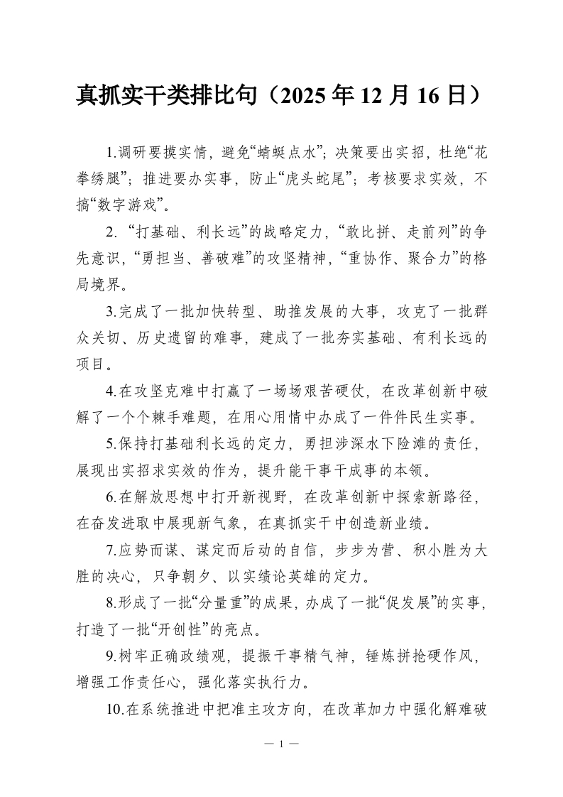 首页写作提升排比句真抓实干类排比句(2025年12月16日)