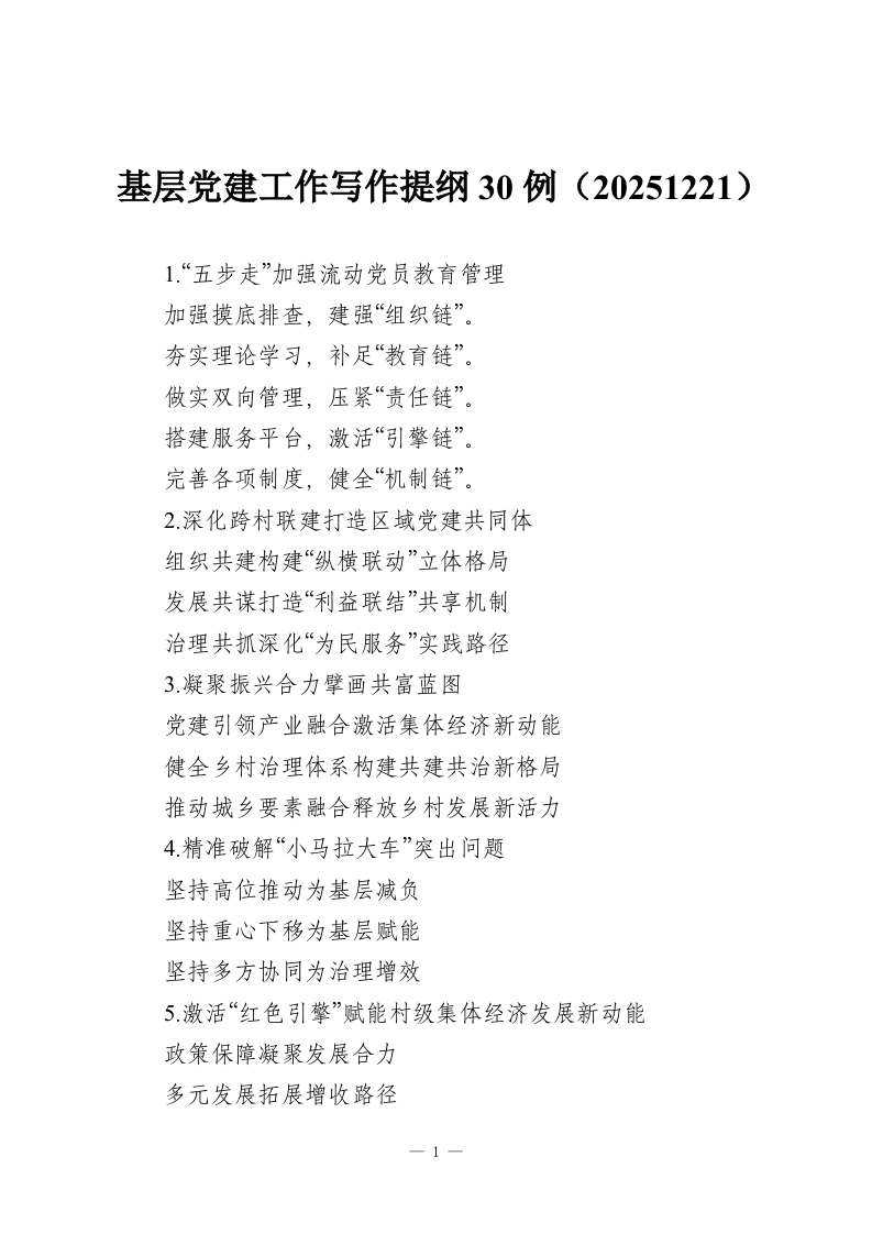 首页写作提升写作提纲基层党建工作写作提纲30例(20251221)