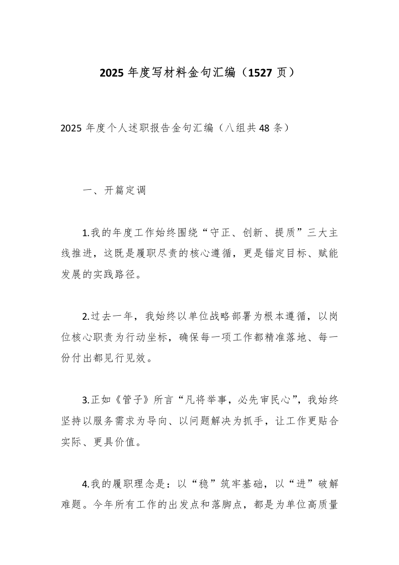 首页写作提升精选金句2025年度写材料金句汇编(1527页)