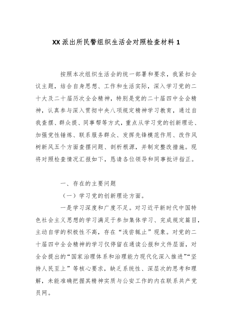 首页公文大全组织生活会XX派出所民警组织生活会对照检查材料1