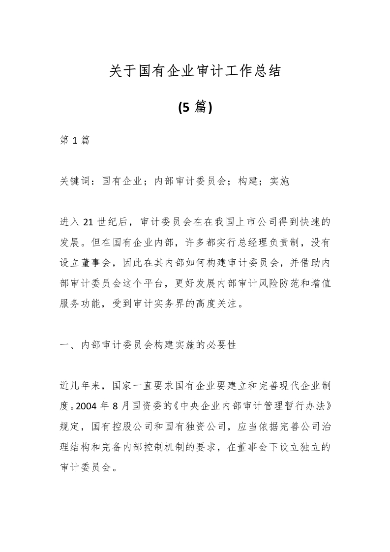 首页公文大全总结报告(5篇)关于国有企业审计工作总结