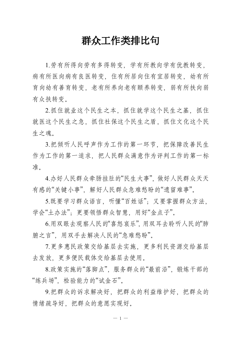 群众工作类排比句