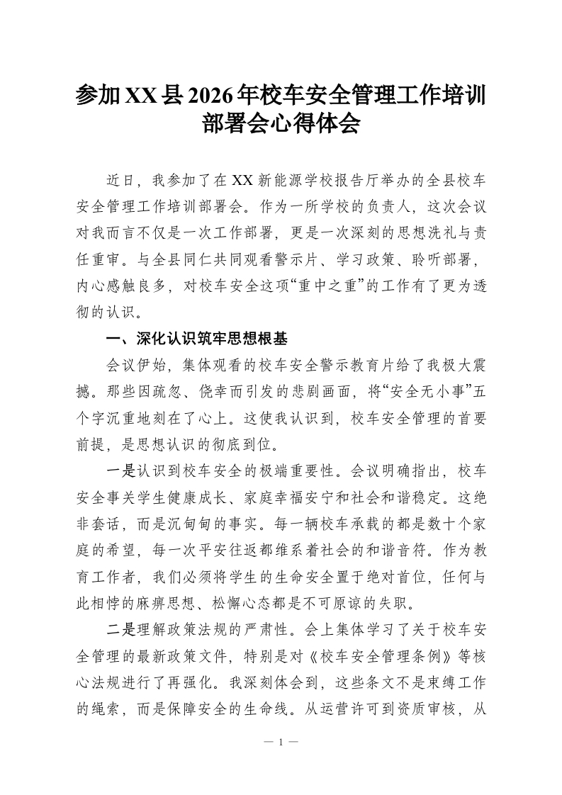 参加XX县2026年校车安全管理工作培训部署会心得体会