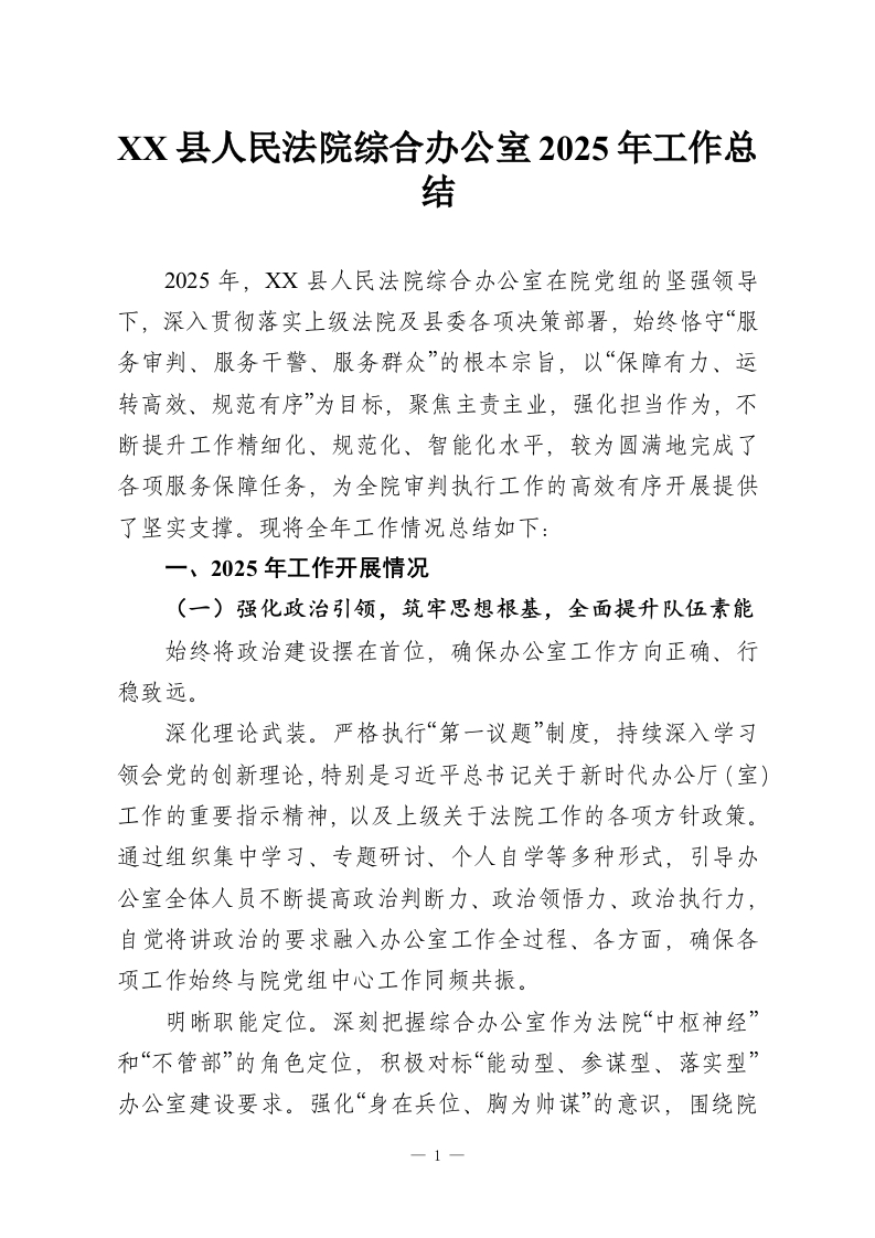 XX县人民法院综合办公室2025年工作总结