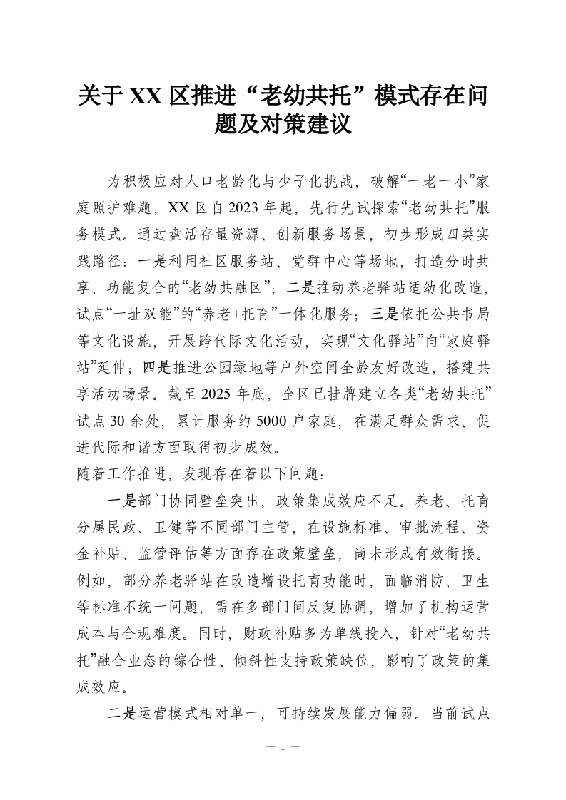 关于XX区推进“老幼共托”模式存在问题及对策建议