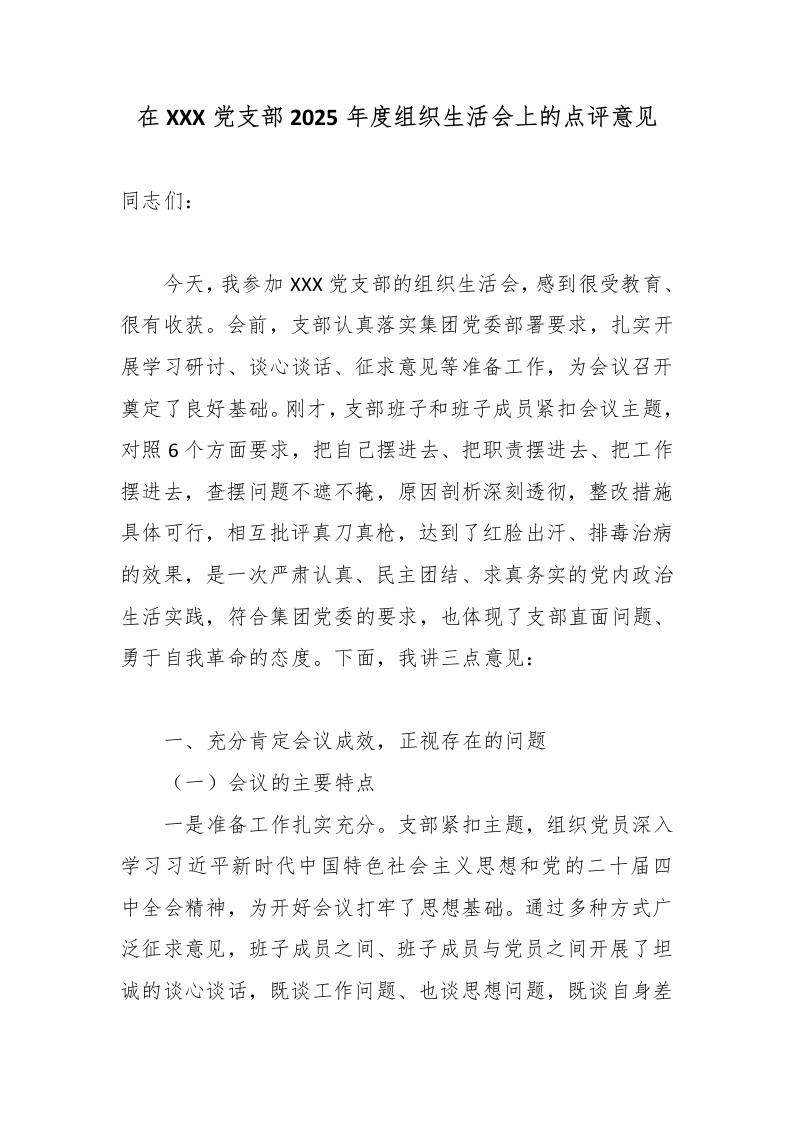 首页公文大全组织生活会在XXX党支部2025年度组织生活会上的点评意见