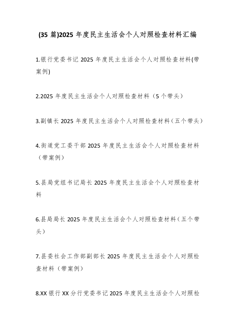(35篇)2025年度民主生活会个人对照检查材料汇编