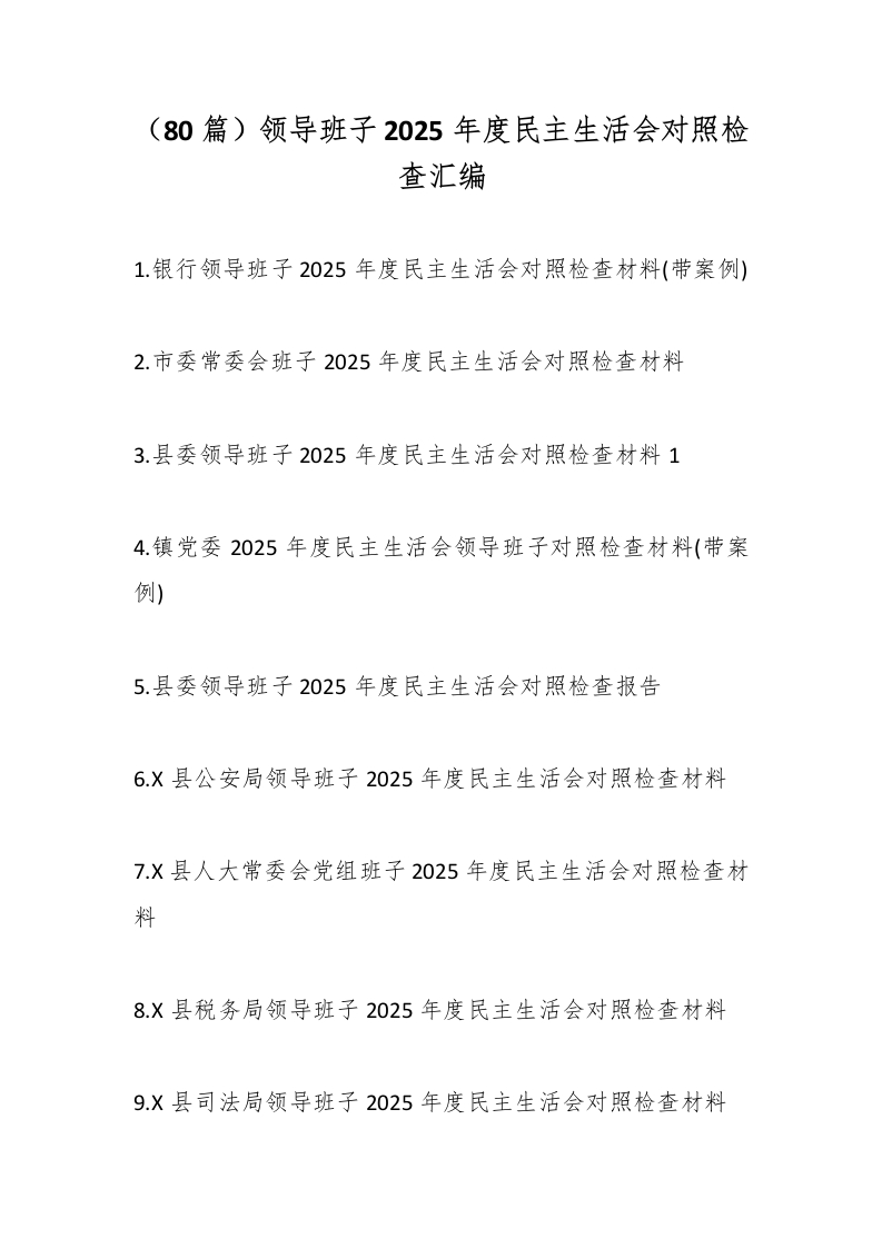 (80篇)领导班子2025年度民主生活会对照检查汇编