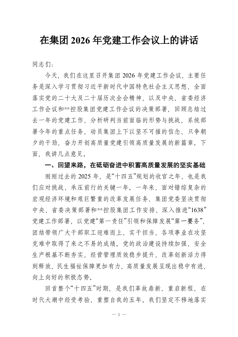 在集团2026年党建工作会议上的讲话