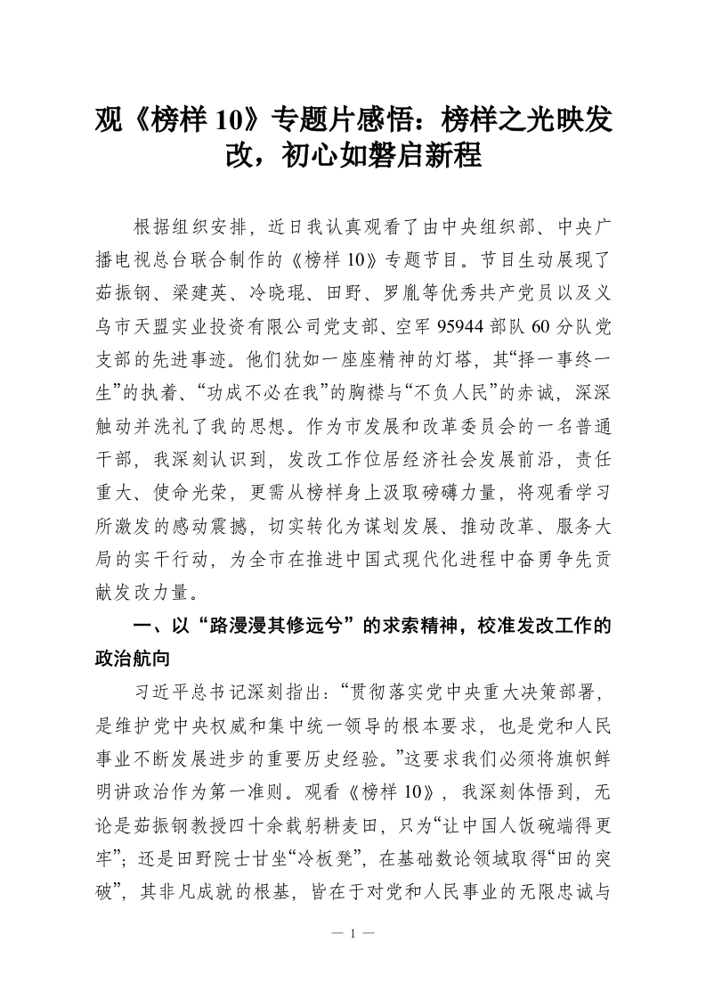 观《榜样10》专题片感悟:榜样之光映发改,初心如磐启新程