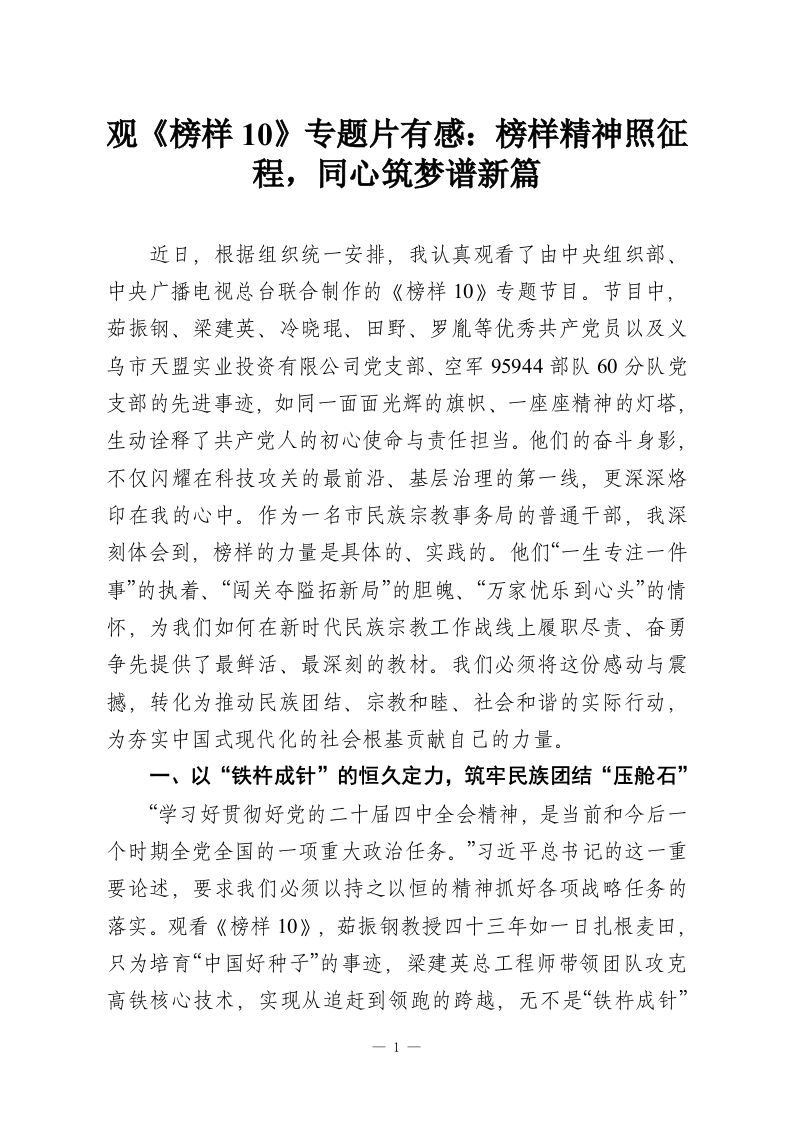 观《榜样10》专题片有感:榜样精神照征程,同心筑梦谱新篇