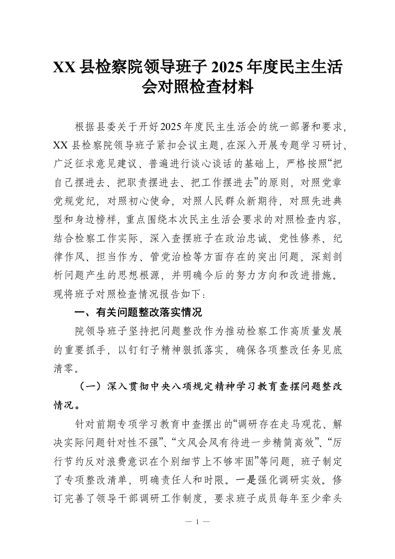 XX县检察院领导班子2025年度民主生活会对照检查材料 (1)