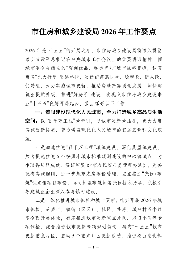 市住房和城乡建设局2026年工作要点
