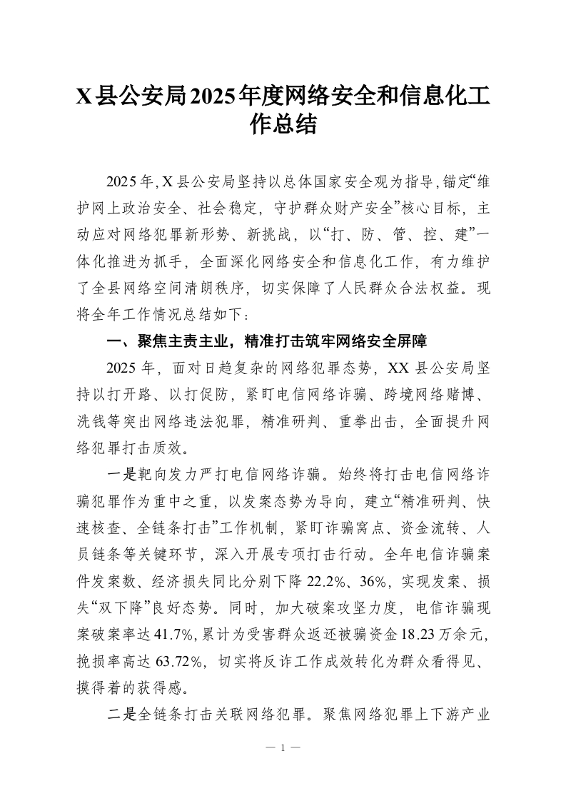 X县公安局2025年度网络安全和信息化工作总结
