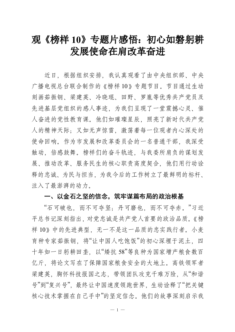 首页公文大全心得体会观《榜样10》专题片感悟:初心如磐躬耕发展使命在肩改革奋进