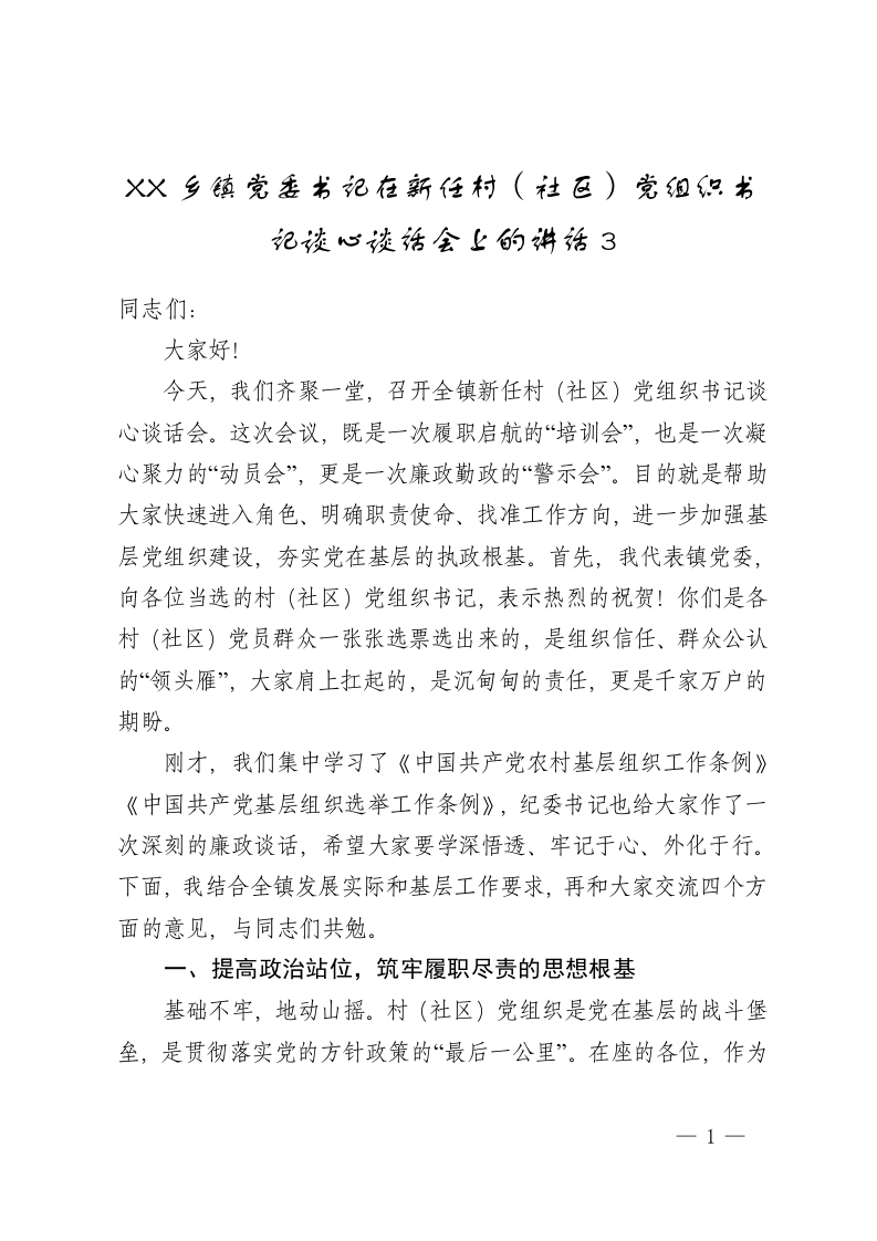 XX乡镇党委书记在新任村(社区)党组织书记谈心谈话会上的讲话3