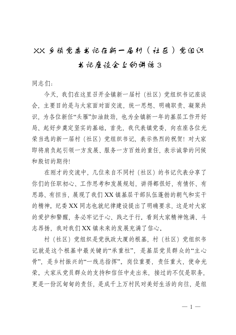 XX乡镇党委书记在新一届村(社区)党组织书记座谈会上的讲话3