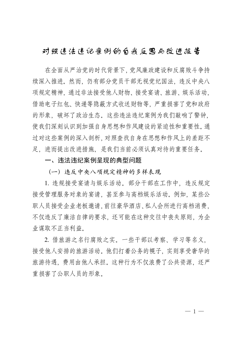 对照违法违纪案例的自我反思与改进报告