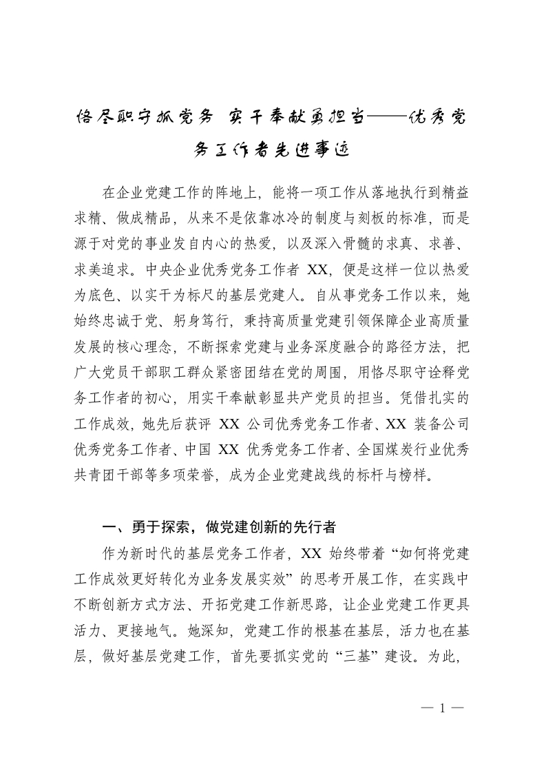 恪尽职守抓党务 实干奉献勇担当——优秀党务工作者先进事迹