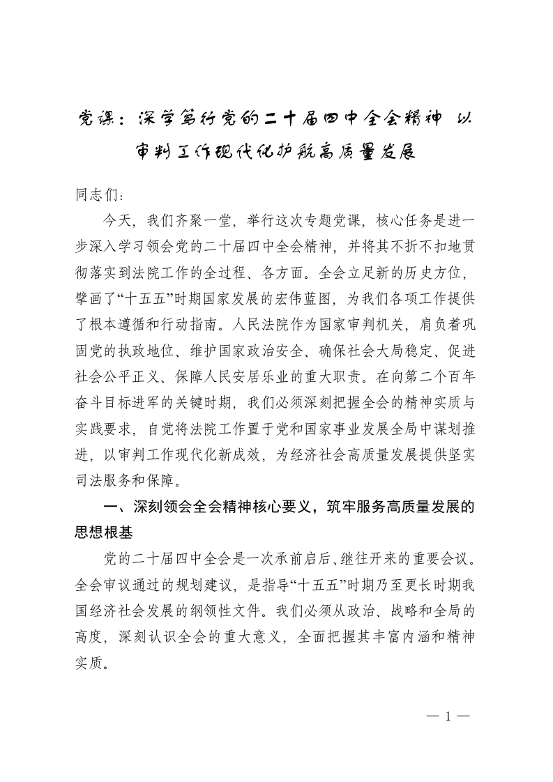 党课:深学笃行党的二十届四中全会精神 以审判工作现代化护航高质量发展