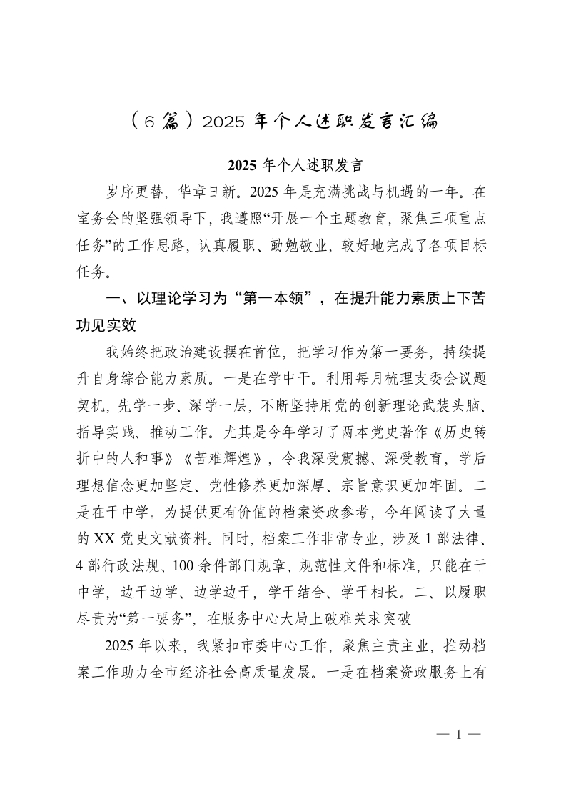 (6篇)2025年个人述职发言汇编