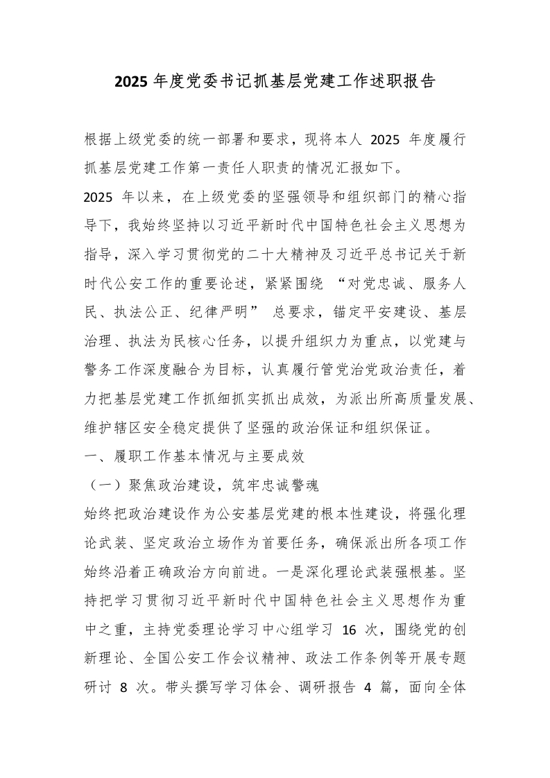 2025年度党委书记抓基层党建工作述职报告