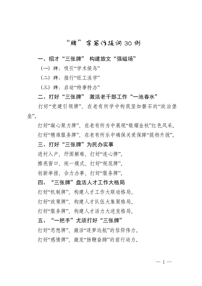 首页写作提升写作提纲“牌”字写作提纲30例