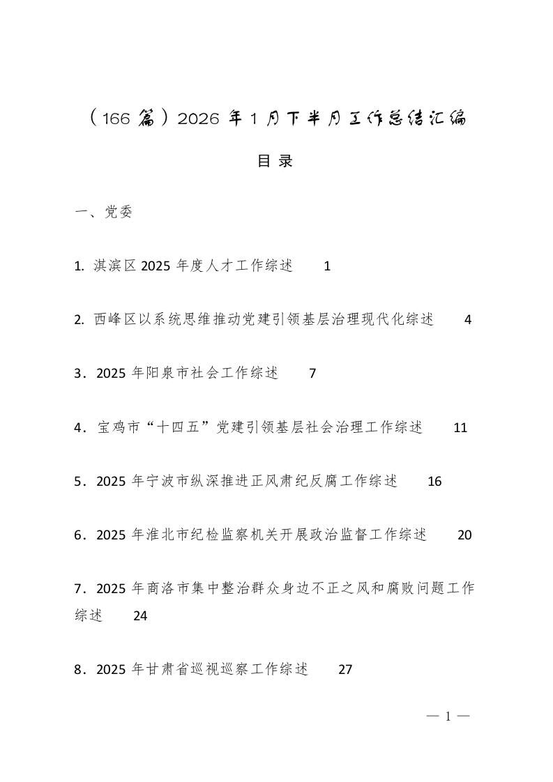 首页公文大全合集汇编(166篇)2026年1月下半月工作总结汇编