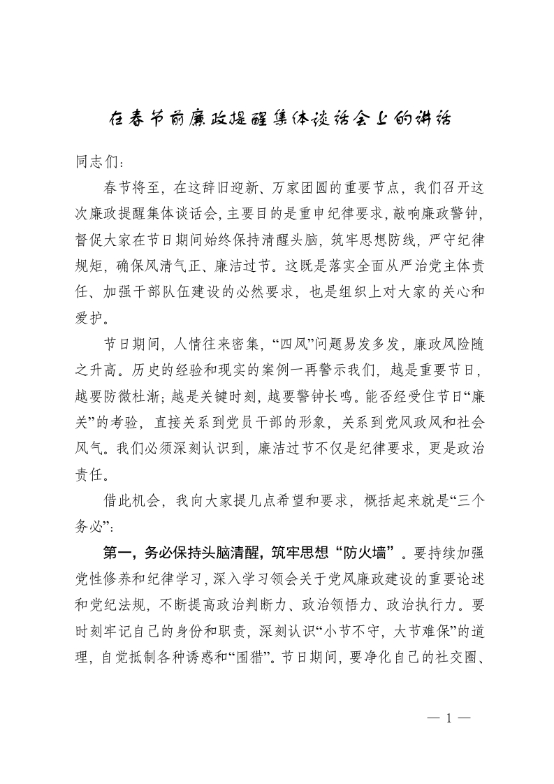 首页公文大全讲话发言在春节前廉政提醒集体谈话会上的讲话