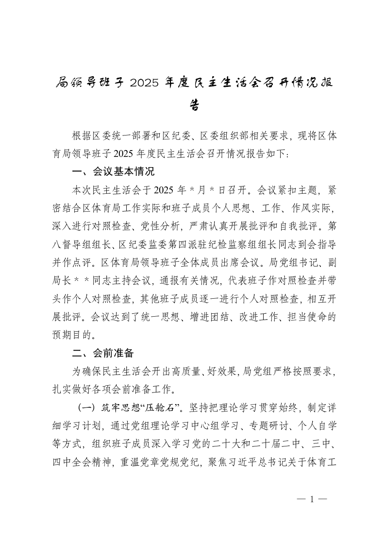 首页公文大全民主生活会局领导班子2025年度民主生活会召开情况报告