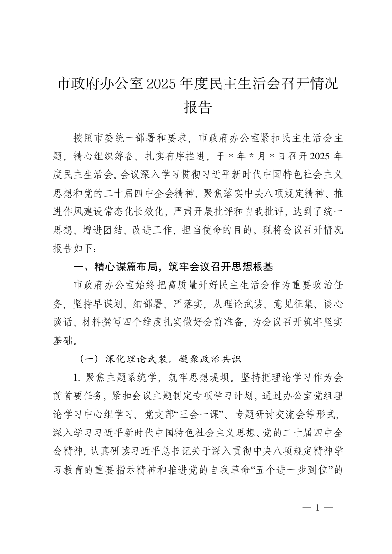 首页公文大全民主生活会市政府办公室2025年度民主生活会召开情况报告