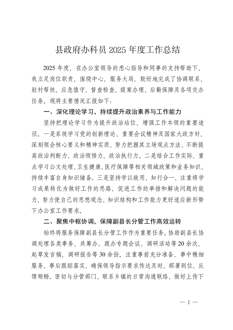 县政府办科员2025年度工作总结