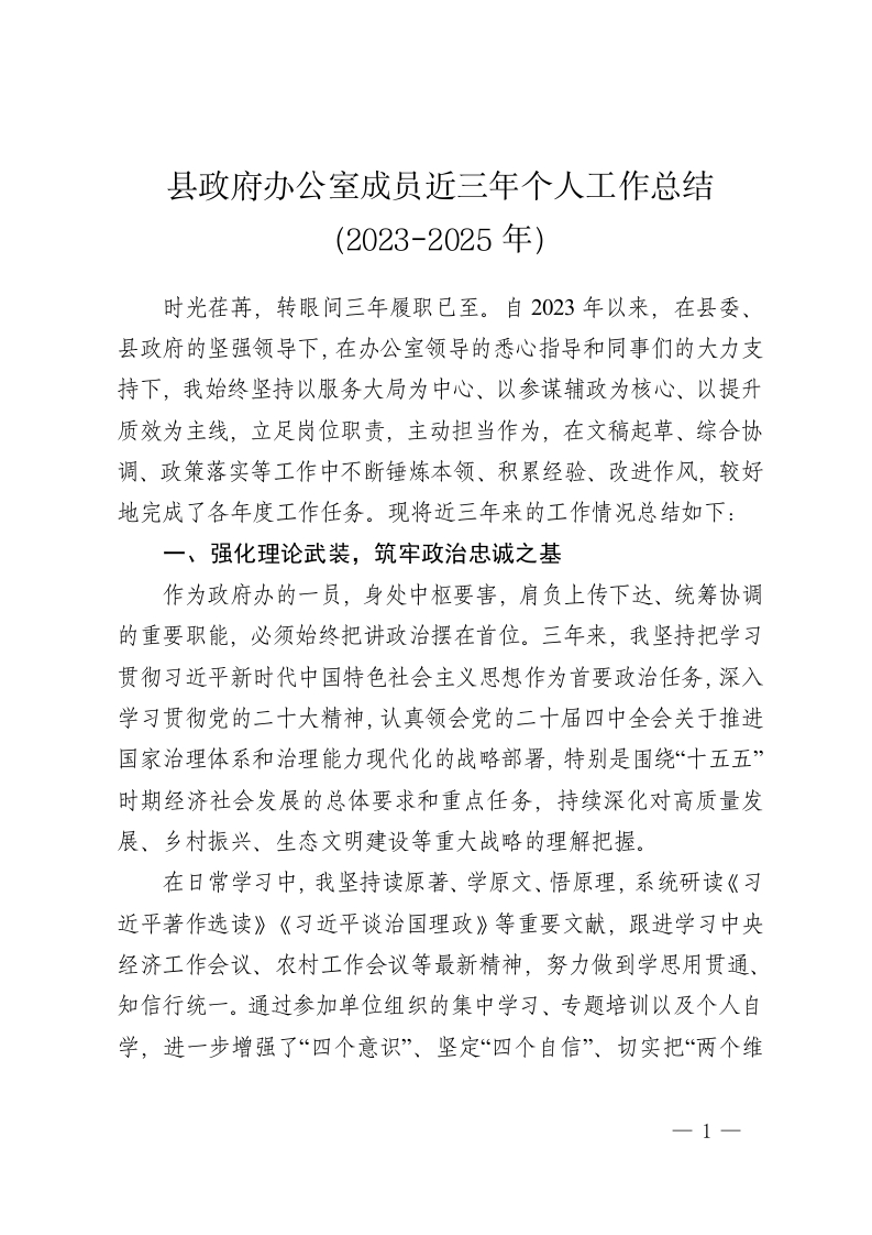 首页公文大全总结报告县政府办公室成员近三年个人工作总结(2023-2025年)