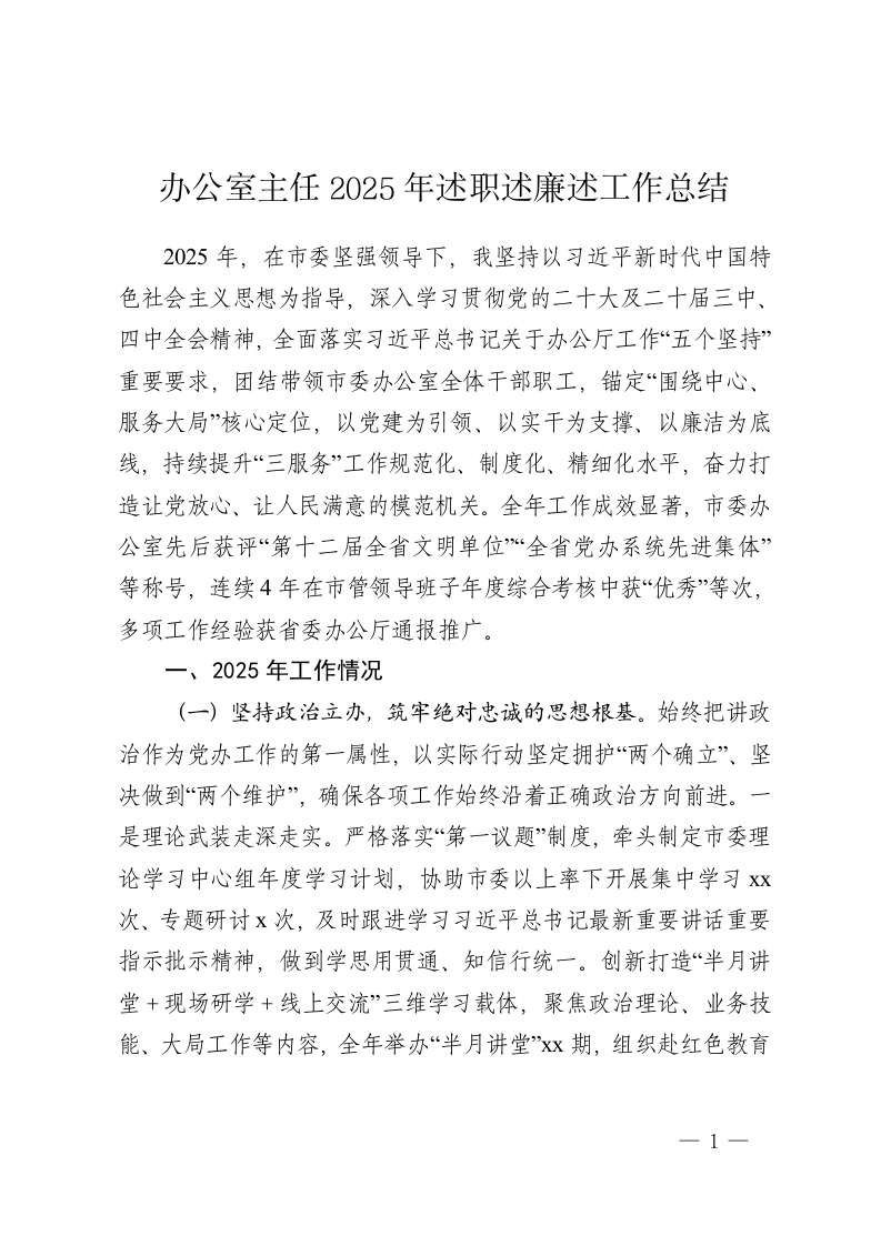 首页公文大全总结报告办公室主任2025年述职述廉述工作总结