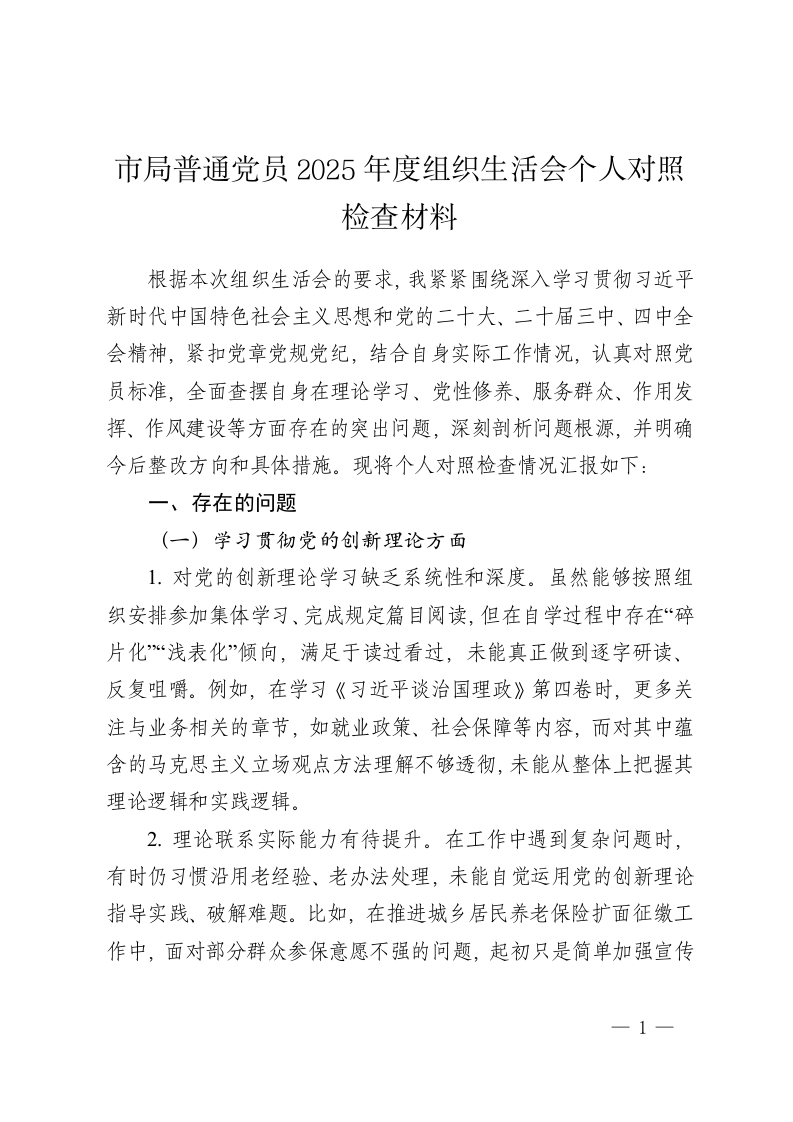 首页公文大全组织生活会市局普通党员2025年度组织生活会个人对照检查材料