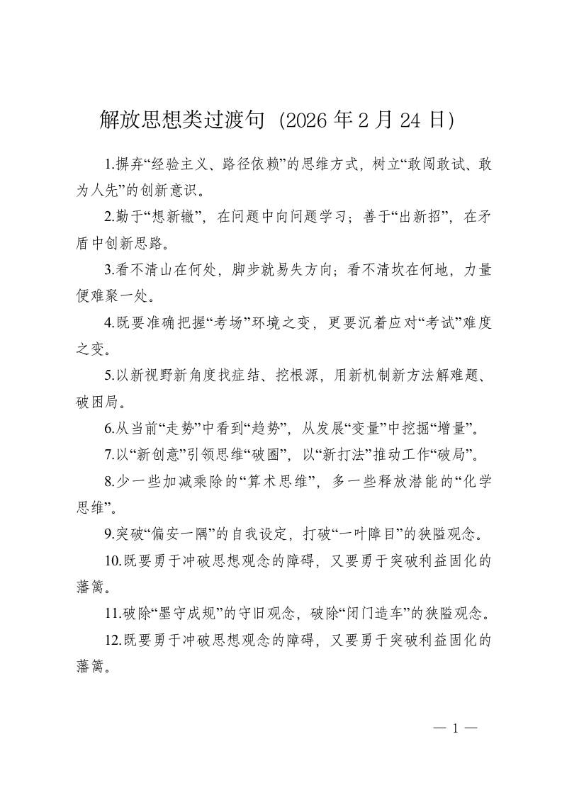 首页写作提升过渡句解放思想类过渡句(2026年2月24日)