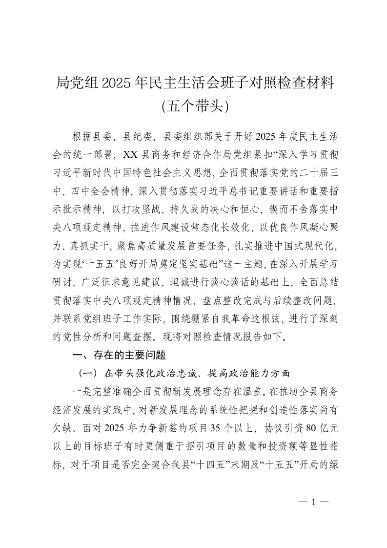 局党组2025年民主生活会班子对照检查材料(五个带头)