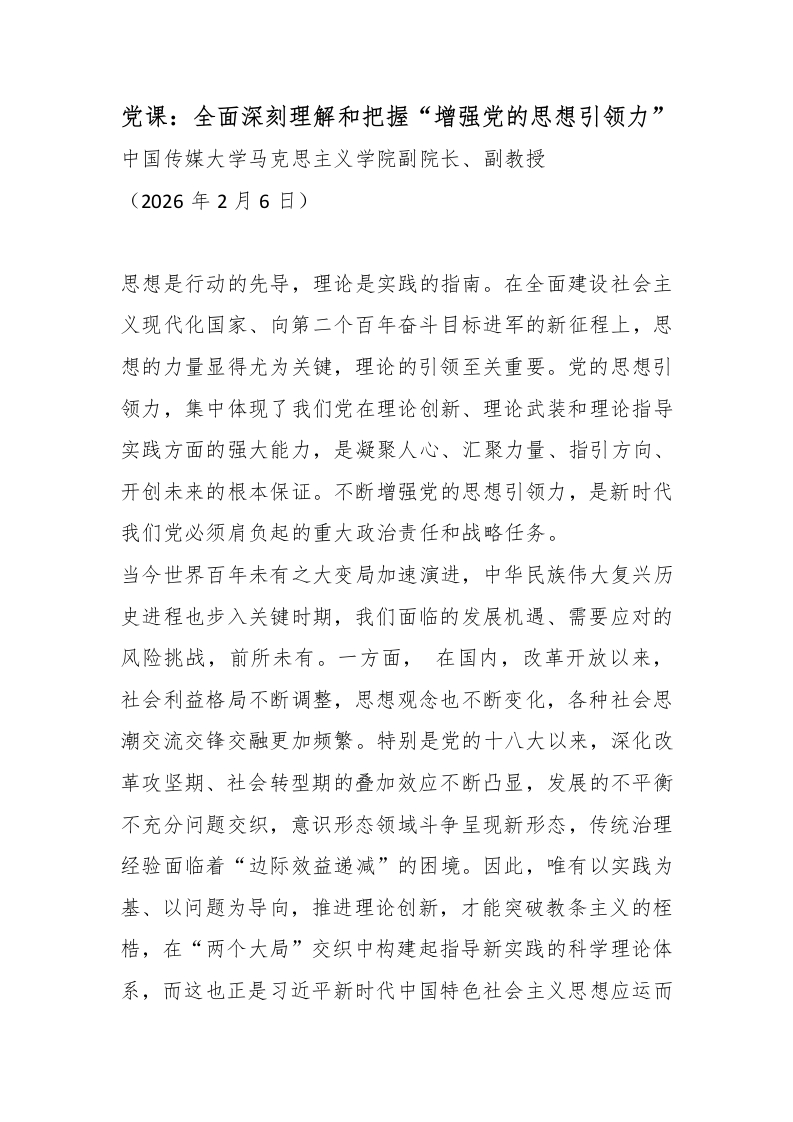 党课:全面深刻理解和把握“增强党的思想引领力”