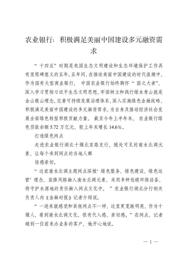 首页百家争鸣银行农业银行:积极满足美丽中国建设多元融资需求