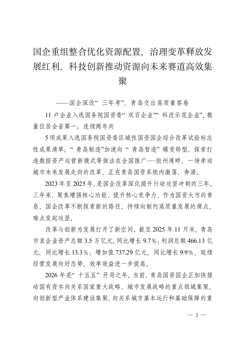 国企重组整合优化资源配置,治理变革释放发展红利,科技创新推动资源向未来赛道高效集聚
